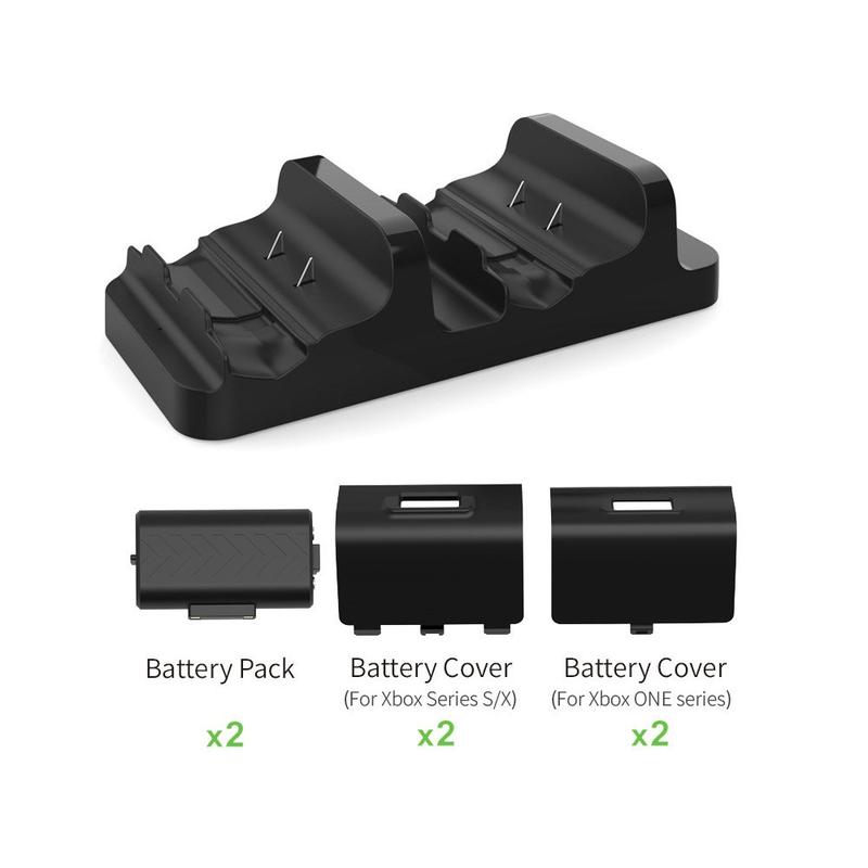 This product is equipped with two TYX-0612 special battery packs. The battery back cover uses the special back cover provided with the product (the battery cover that is not shipped with this product cannot be used). The two battery covers can be adapted for Xbox One S, for Xbox One X controller, for Xbox Series X controller and for Elite controller.