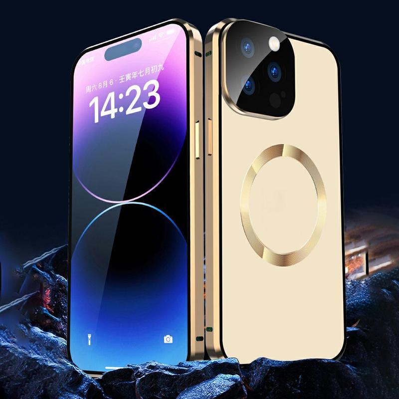 Dual-Sided Tempered Glass+Magnetic Metal Frame Anti-Drop Case for iPhone 15 Compatible with MagSafe Phone Cover with Buckle Lock - Purple