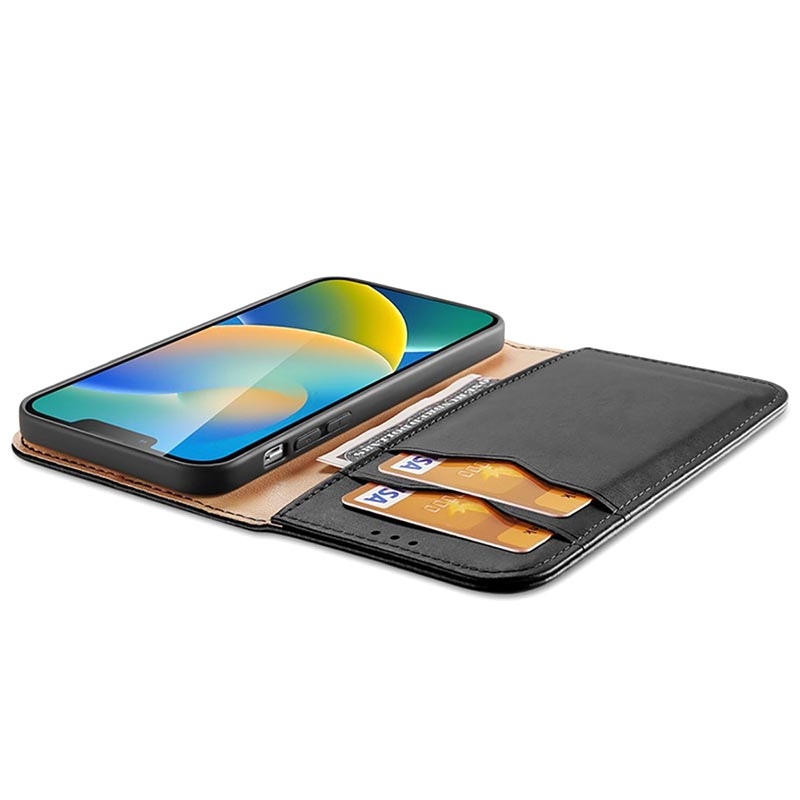 DUX DUCIS Hivo Series for iPhone 14 Shockproof Phone Wallet Case RFID Blocking Design Genuine Leather Folio Flip Cover Stand