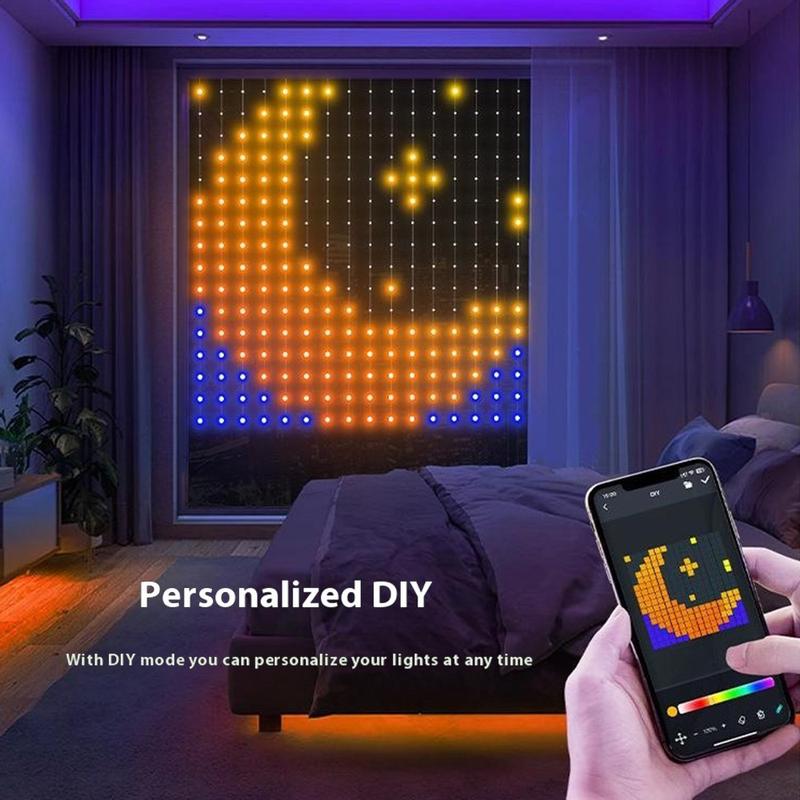 Dynamic RGB Programmable DIY Curtain Lights - 2.4mx2.4m, 256 LEDs, APP-Controlled