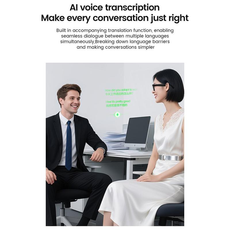 Smart eyewear like the E02 uses AI image recognition and real-time translation to bridge communication gaps instantly. Its dual role as both camera glasses and wireless audio device makes it a futuristic all-in-one gadget for both productivity and leisure.