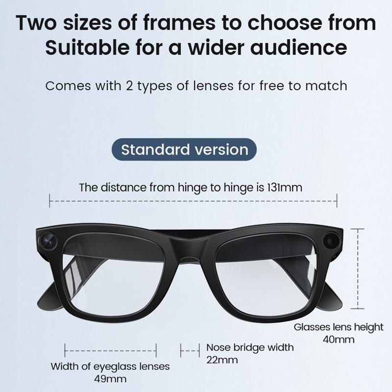 The E02 smart AI glasses combine advanced technology with everyday practicality, offering photography, real-time translation, AI object recognition, and audio features all in one wearable device. Equipped with an 8MP Sony dual-lens camera and AI-powered anti-shake stabilization, these glasses capture 1080P HD video and photos with exceptional clarity. Integrated microphones and speakers enable hands-free calls and music playback, eliminating the need for separate earphones. With intuitive touch controls, long battery life, and an ergonomic lightweight design, the E02 is perfect for travelers, creators, and professionals who want performance and style in one.