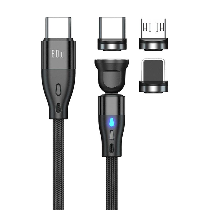 E7 3-in-1magnetic Cable with 540-degree Rotation - USB-C, Lightning, MicroUSB - 1m - 60W, 480Mbps