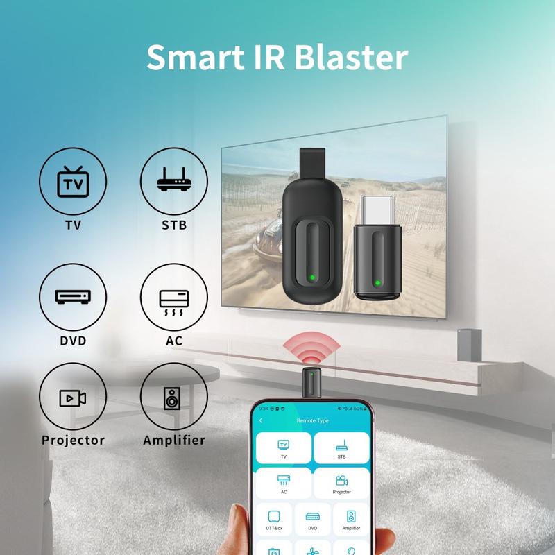 No batteries, no charging and no app-specific restrictions - simply plug the adapter into your device’s Lightning/Type-C port and enjoy immediate control over IR-based home electronics.