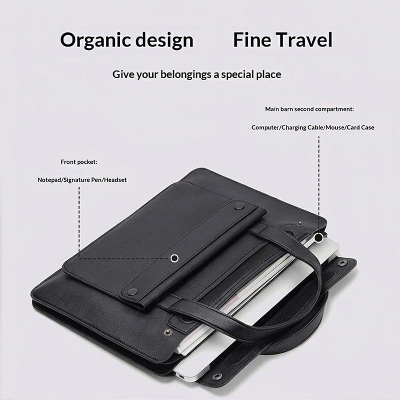 Accordion-style bags are popular because they make it easier to separate items into structured sections instead of stacking everything in one open compartment. This can improve both organisation and protection, especially when carrying electronics together with daily accessories. PU leather is also widely used in laptop bags because it offers a neat, professional appearance while being easier to maintain than many natural materials.