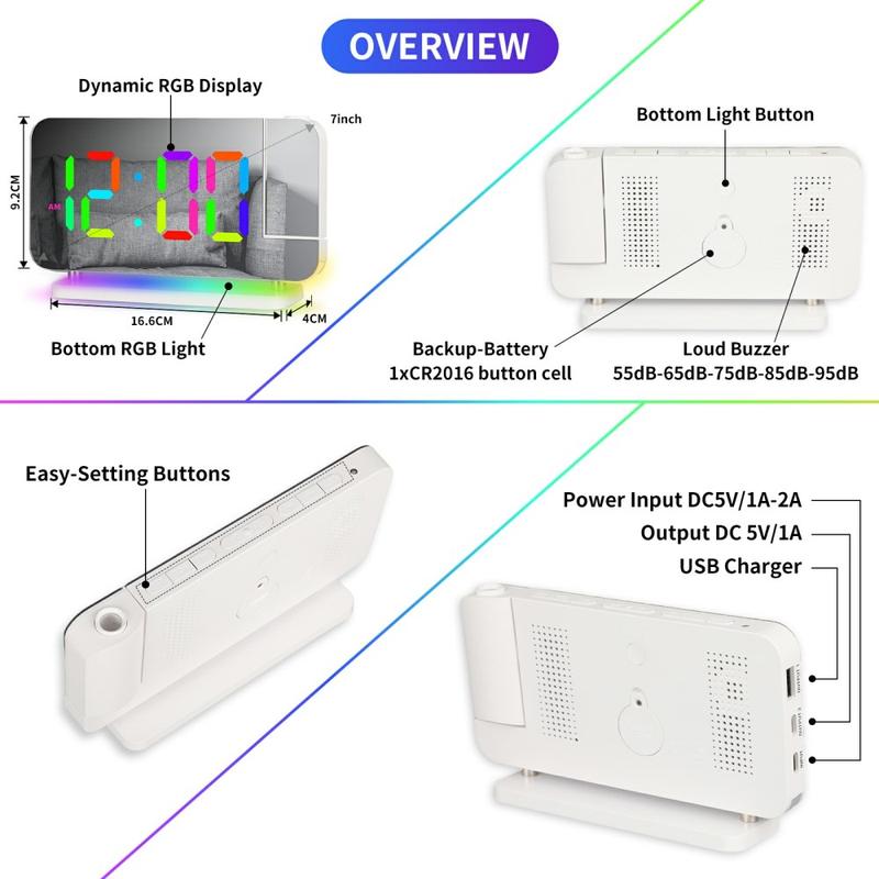 - Bedside Clock: Use the RGB lighting and projection feature to check the time effortlessly at night.