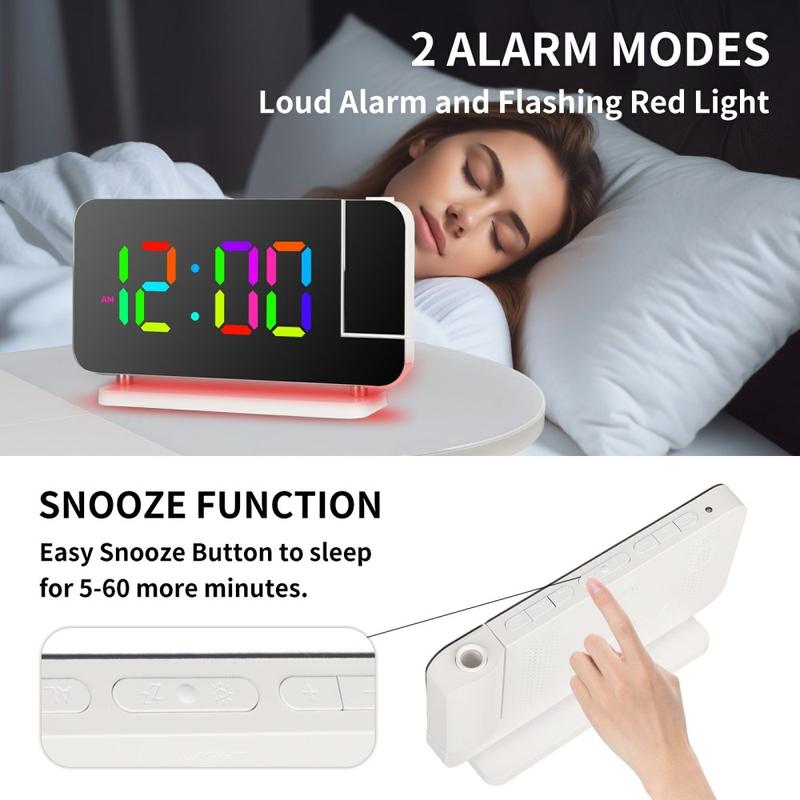 - Projection Function: Displays the time on the ceiling with adjustable brightness and 360° rotation for convenient viewing.