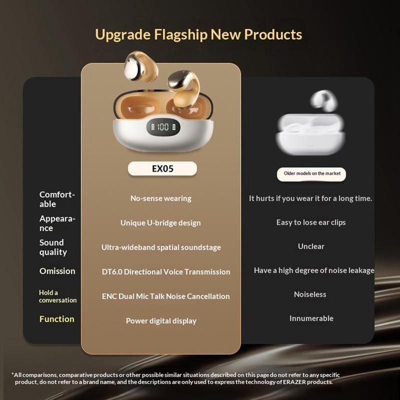 ERAZER EX05 Open-Ear Clip-On Wireless Earphones - Bluetooth 5.4 Sports Earphones with Charging Case