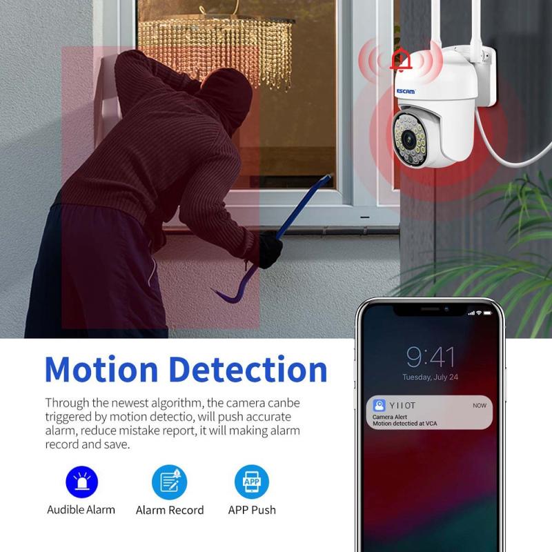 The ESCAM PT305 provides reliable, high-definition security with the flexibility of both indoor and outdoor use. The intelligent motion detection and push notifications ensure you’re always informed of important events, while the dual light source ensures clarity in all conditions. Easy to install, the PT305 is the perfect addition to any home or business.