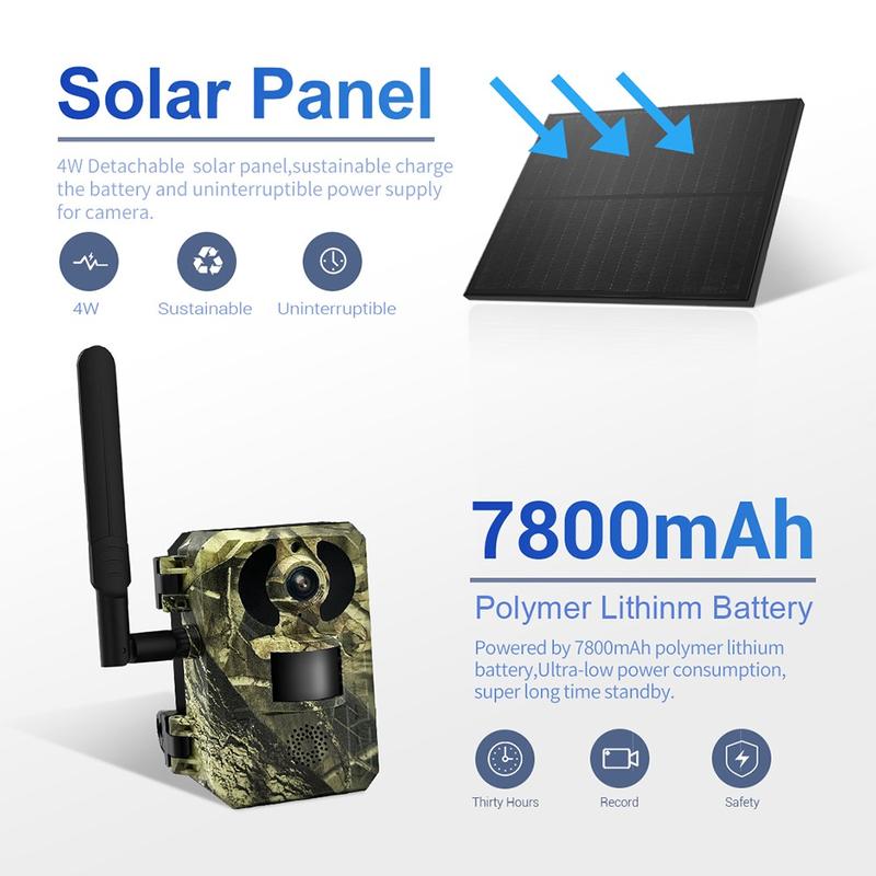 - Solar-Powered Operation: Includes a 4W solar panel with monocrystalline silicon material, ensuring continuous operation with minimal maintenance.