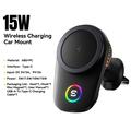 Essager 15W Magnetic Wireless Charger/Car Holder with Cooling Fan, RGB Light and Air Vent Mount - MagSafe Compatible