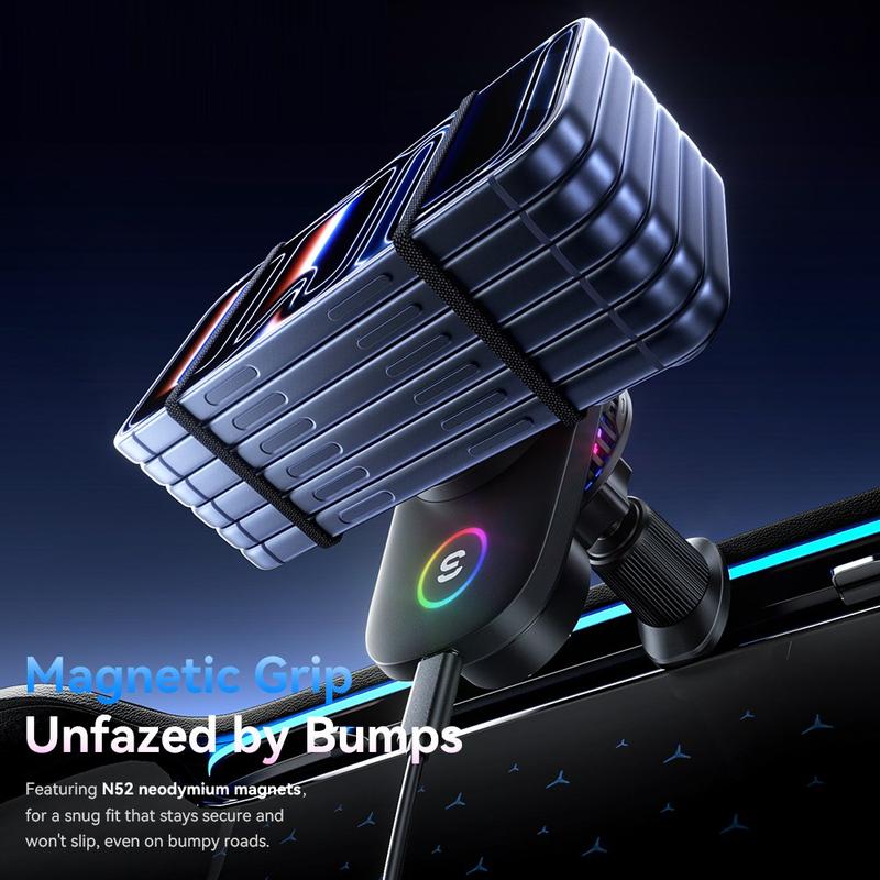 This is more than a basic car mount. It gives you fast charging, a strong magnetic grip and a safer way to keep your phone within view while driving. The built-in cooling fan helps maintain more stable charging performance, and the locking vent clip is designed to stay secure even on uneven roads. It is a smart upgrade for anyone who wants less cable clutter, easier one-hand use and a more premium in-car setup.