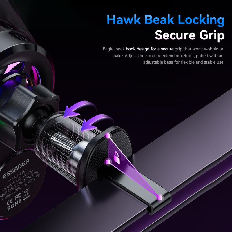 If you want a more convenient driving setup, this ESSAGER charger is an easy choice. It combines secure mounting, fast wireless charging, active cooling and stylish lighting in one compact accessory, making every drive more practical and more comfortable.