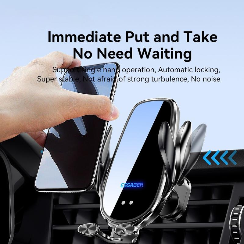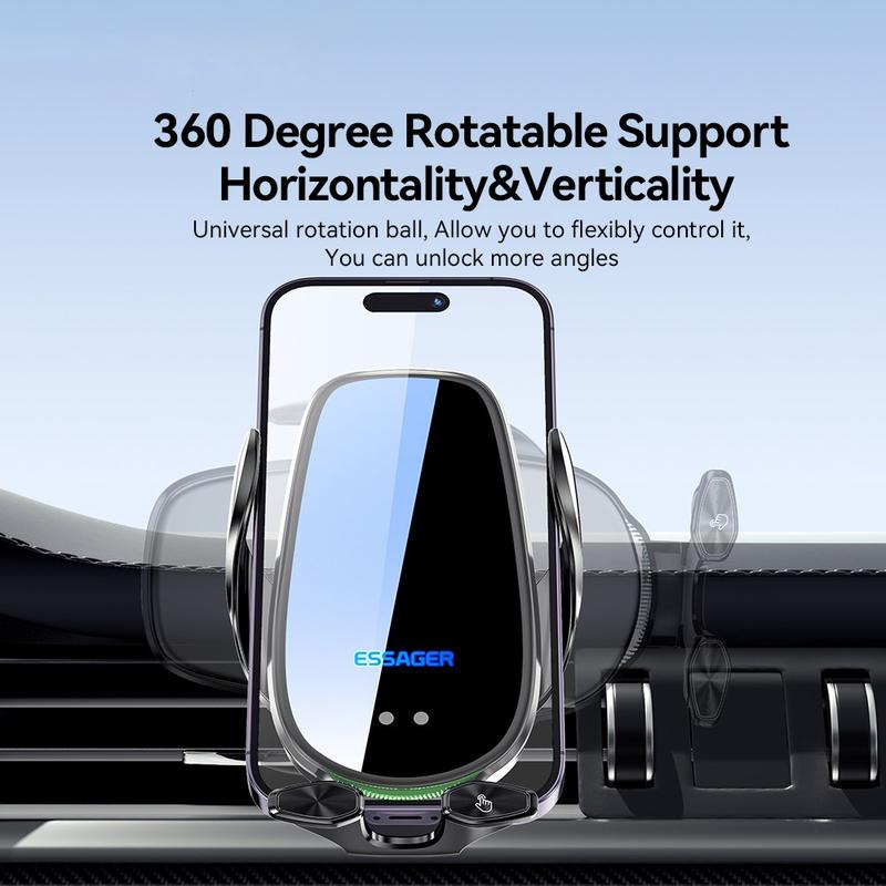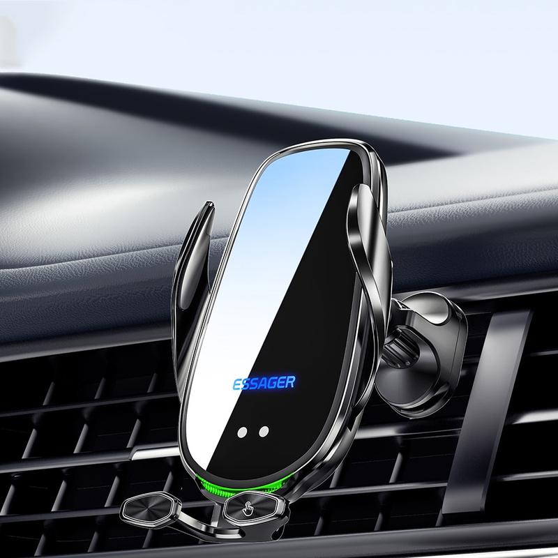 ESSAGER 15W Smart Car Wireless Charger Vehicle Phone Mount Charger Air Vent Phone Holder with Ambient Light