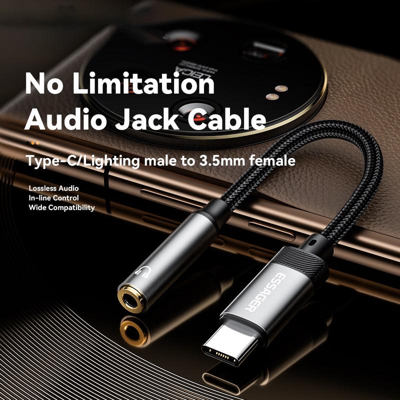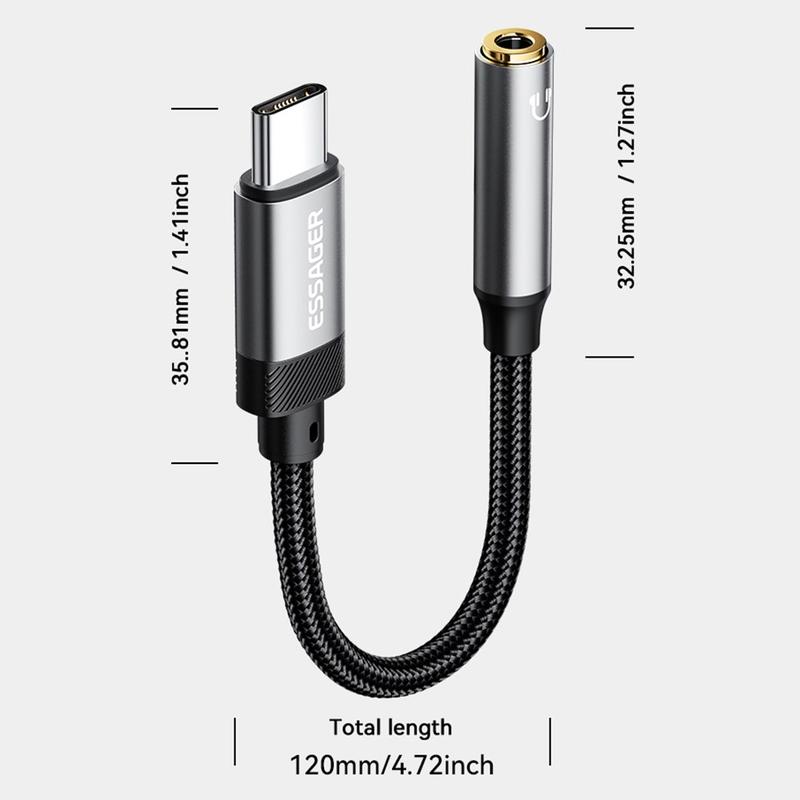 Enjoy high-quality audio with the ESSAGER Type-C to 3.5mm Audio Adapter, designed to seamlessly connect your wired headphones or audio devices to modern Type-C smartphones, tablets, and laptops. Featuring a built-in DAC digital decoding chip, this adapter ensures superior sound quality while maintaining full support for calls and inline controls. Compact and lightweight, it is the perfect solution for devices without a 3.5mm headphone jack.