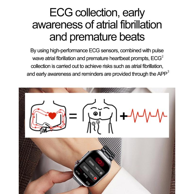 - Comprehensive Health Monitoring: Track ECG, heart rate, blood pressure, blood oxygen levels, and body temperature, providing real-time insights into your overall health.