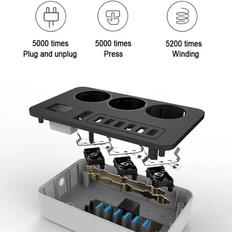 This power strip can be used with mainstream electrical plugs. It has generates minimal heat, and offers high safety. The plug and socket maintain a secure connection even after 10,000 normal insertions and removals
