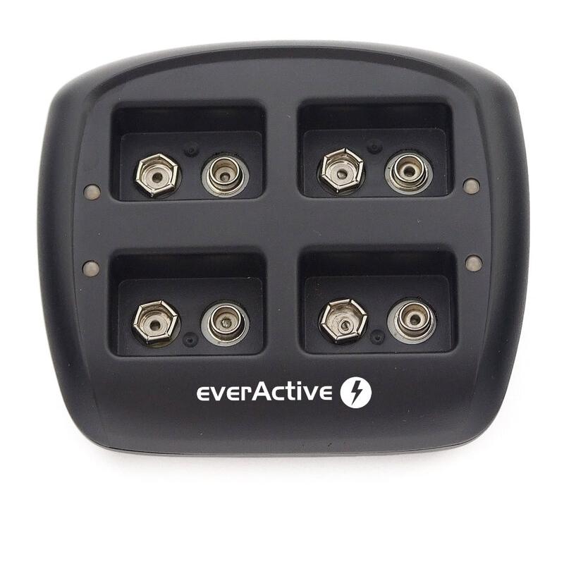 The everActive NC 109 is a unique, specialized design that allows you to charge 1 to 4 pcs Of 9V Ni-MH rechargeable batteries - each cell is loaded individually. It allows you to charge up to 4 9V rechargeable batteries at the same time, in any configuration/combination, of any capacity, any manufacturer. The charger has 4 independent charging channels.