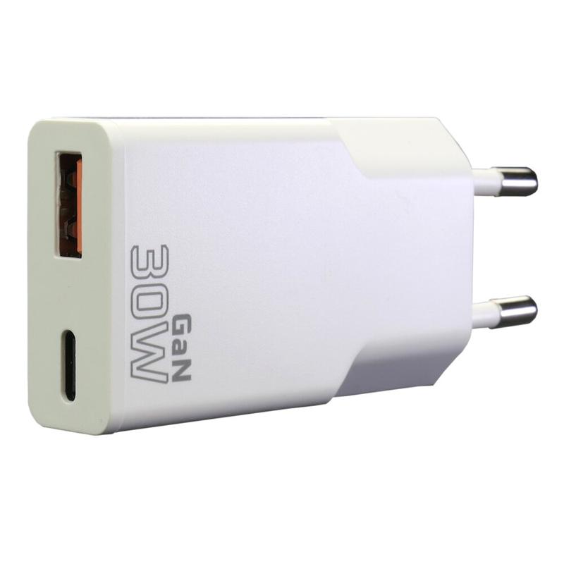 Equipped with a USB-C PD port and a USB QC3.0 port, the charger delivers a total output power of 30W. You can charge two devices at once – smartphones, tablets, cameras, ultrabooks, or power banks – with speed and reliability.
