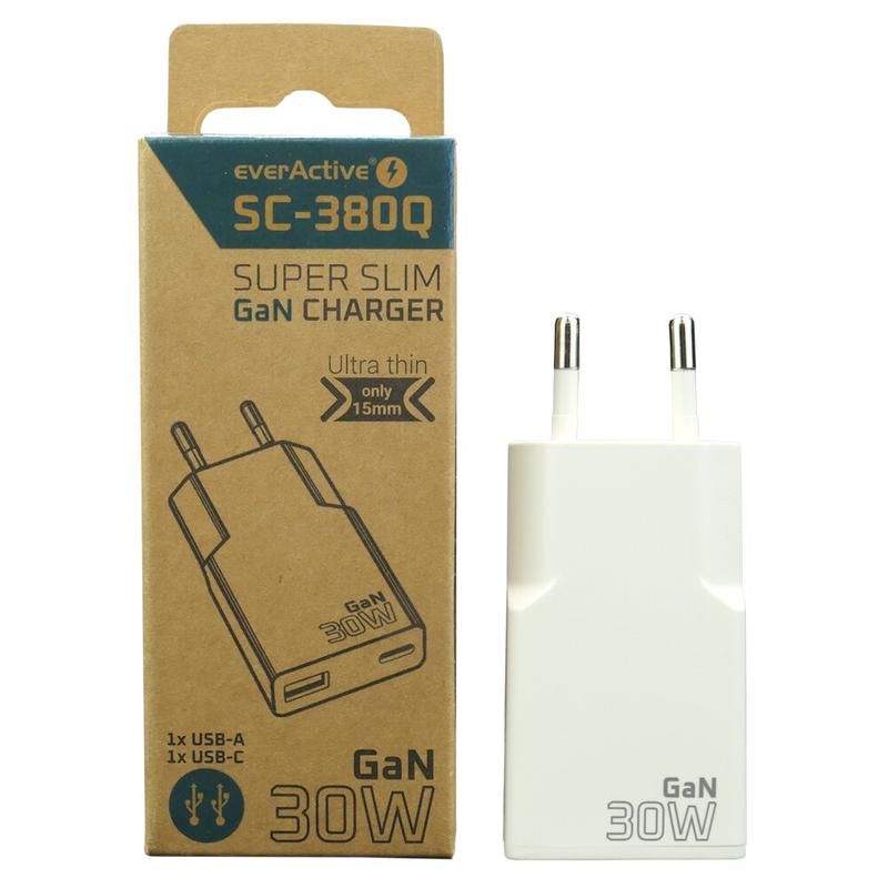 everActive SC-380Q GaN Super Slim 30W Wall Charger with USB QC3.0 & USB-C PD Ports
