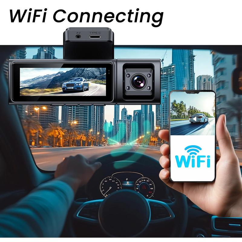 F9 3-Channel Dash Cam with GPS - 4K Front, 1080P Interior and Rear Car Camera, WiFi App Control & Night Vision