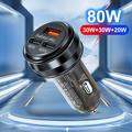 80W Car Charger with 3 Ports - USB and PD Type-C Fast Charging