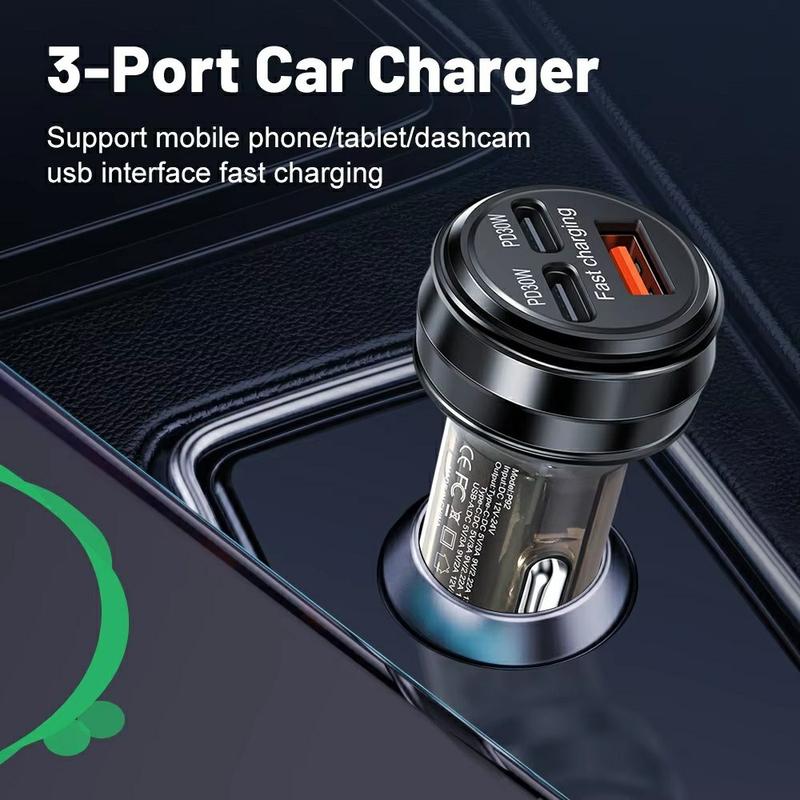 Equipped with three versatile ports (USB + PD Type-C), this adapter supports fast charging for multiple devices at once — perfect for drivers, passengers, or business travelers who need all their devices powered.