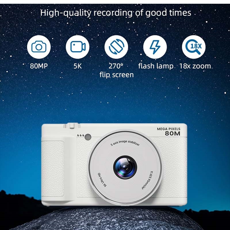 FC003W Digital Camera with 2.8" IPS Flip Screen - 5K Video Recording, 80MP Photos and WiFi Connectivity