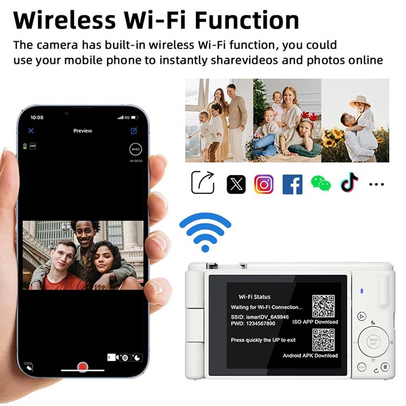 The FC003W digital camera is designed for users who want powerful photo and video capabilities in a compact and easy-to-use device. With support for 5K video recording and high-resolution photography, this camera is ideal for everyday shooting, vlogging, travel and creative projects.