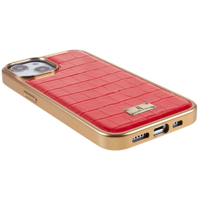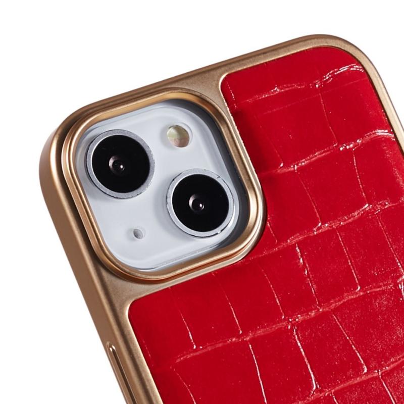 FIERRE SHANN For iPhone 14 Stylish Electroplated Phone Protective Cover Crocodile Texture PU Leather Coated TPU Anti-drop Case