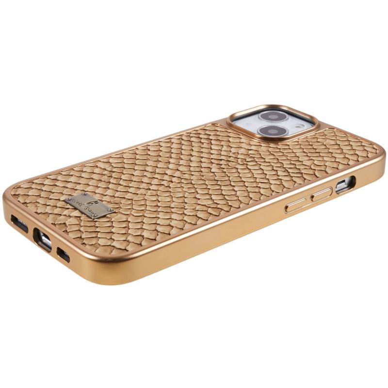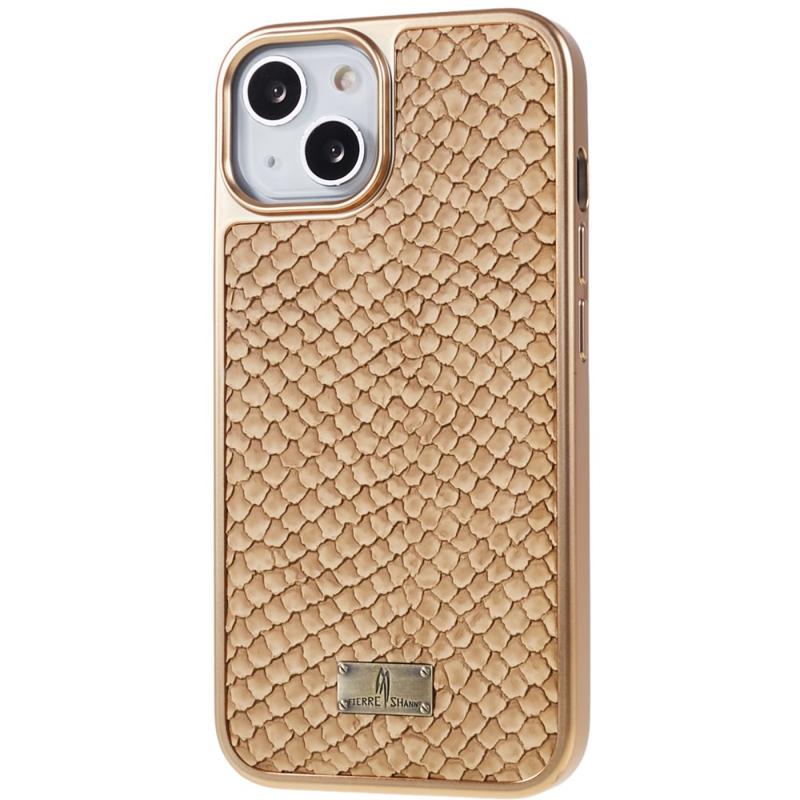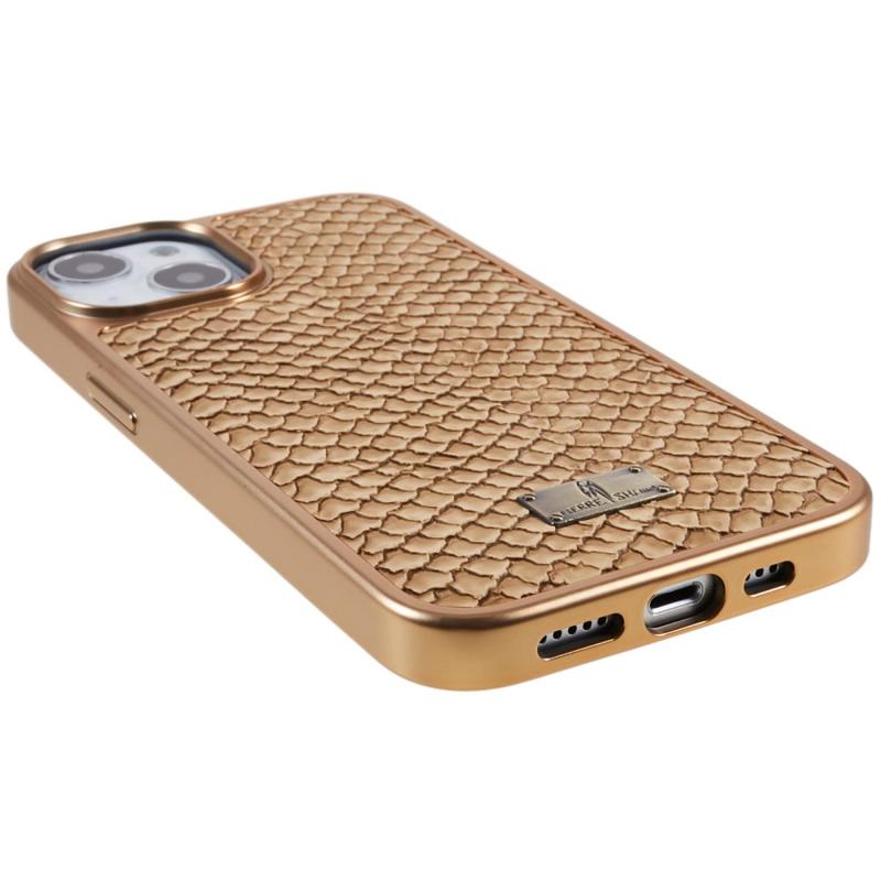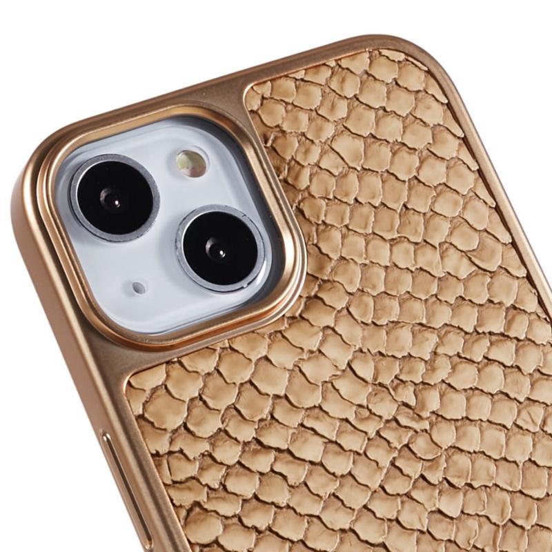 FIERRE SHANN For iPhone 14 Plus Snake Texture PU Leather Coated TPU Phone Case Electroplated Shockproof Anti-scratch Cover