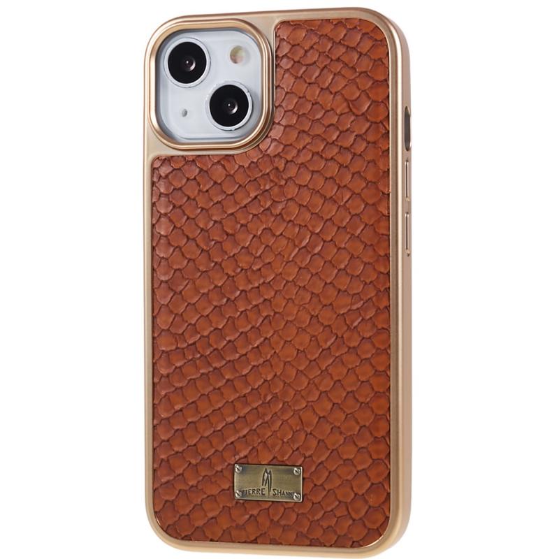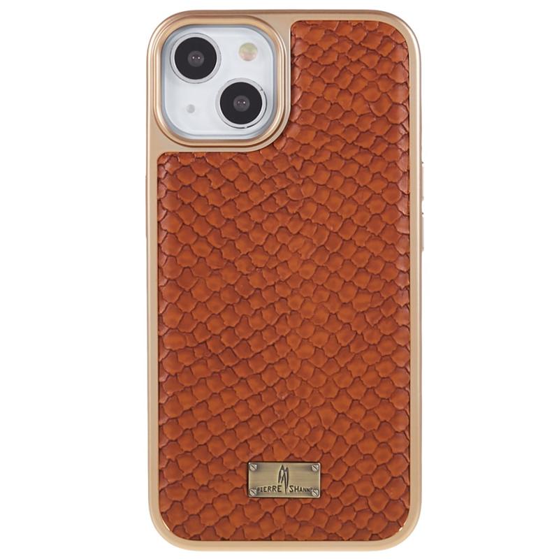 FIERRE SHANN For iPhone 14 Plus Snake Texture PU Leather Coated TPU Phone Case Electroplated Shockproof Anti-scratch Cover