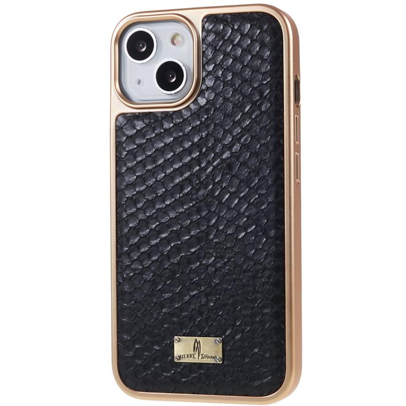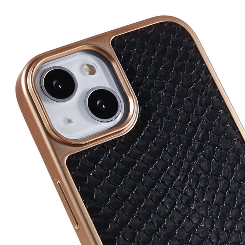 FIERRE SHANN For iPhone 14 Plus Snake Texture PU Leather Coated TPU Phone Case Electroplated Shockproof Anti-scratch Cover