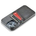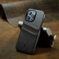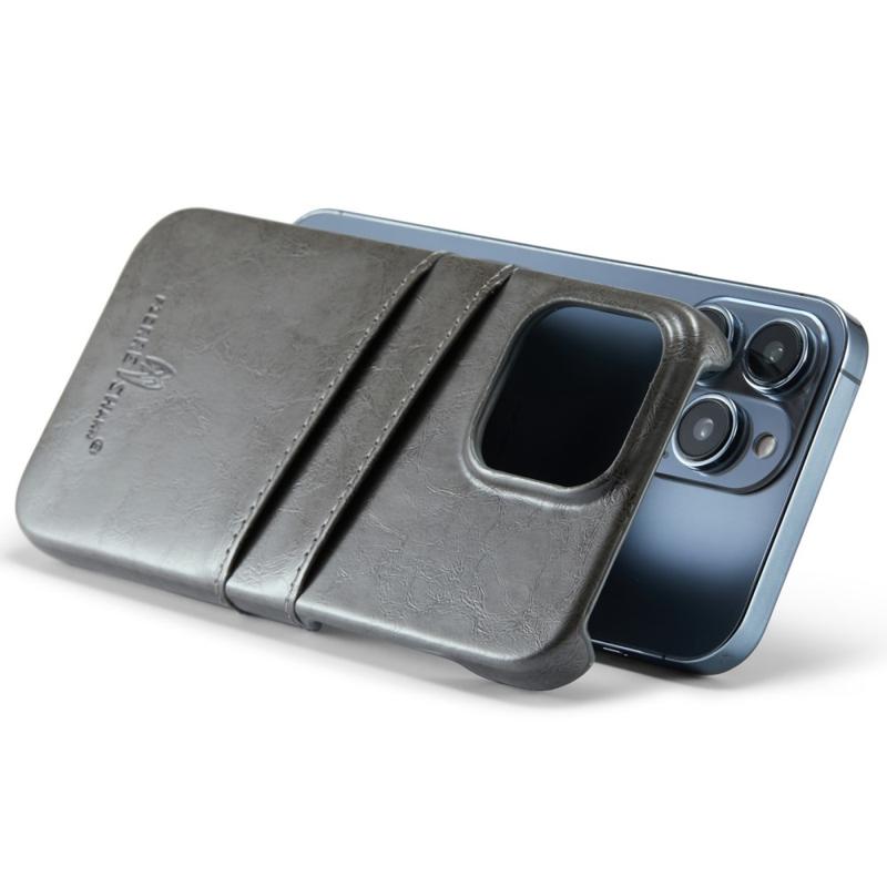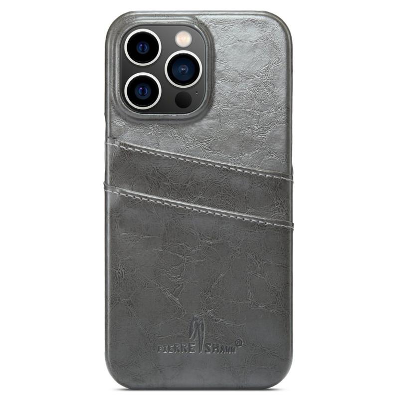 FIERRE SHANN For iPhone 14 Pro Waxy PU Leather Coated Hard PC Phone Case Card Holder Back Cover