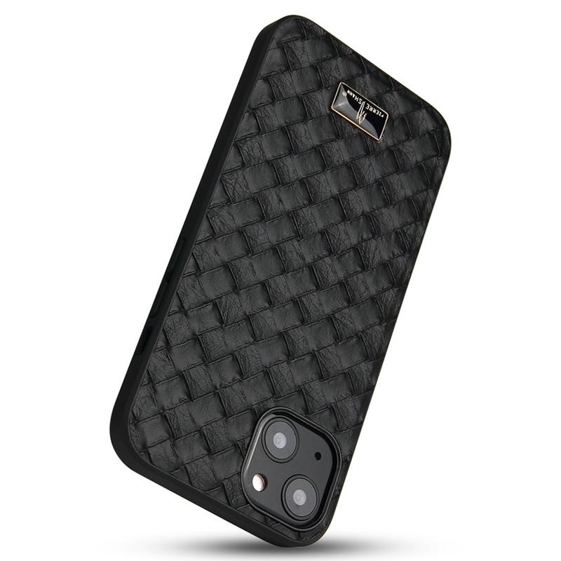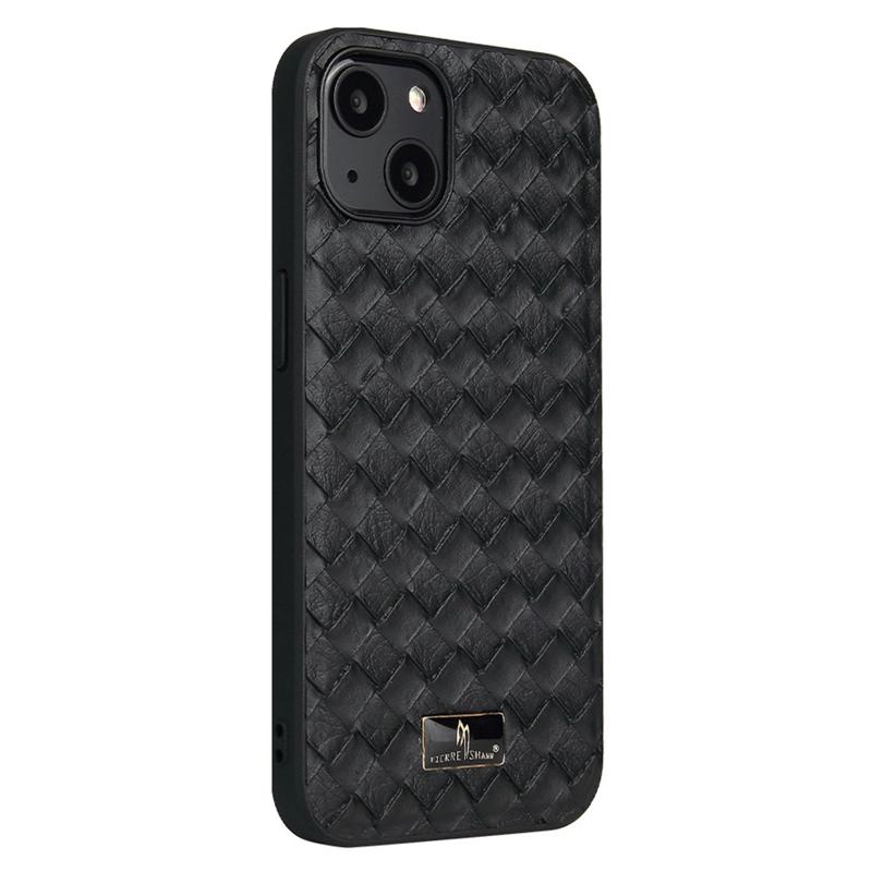 FIERRE SHANN For iPhone 14 Anti-scratch Ultra Slim Phone Case Hardware Decor PU Leather Coated TPU Back Cover