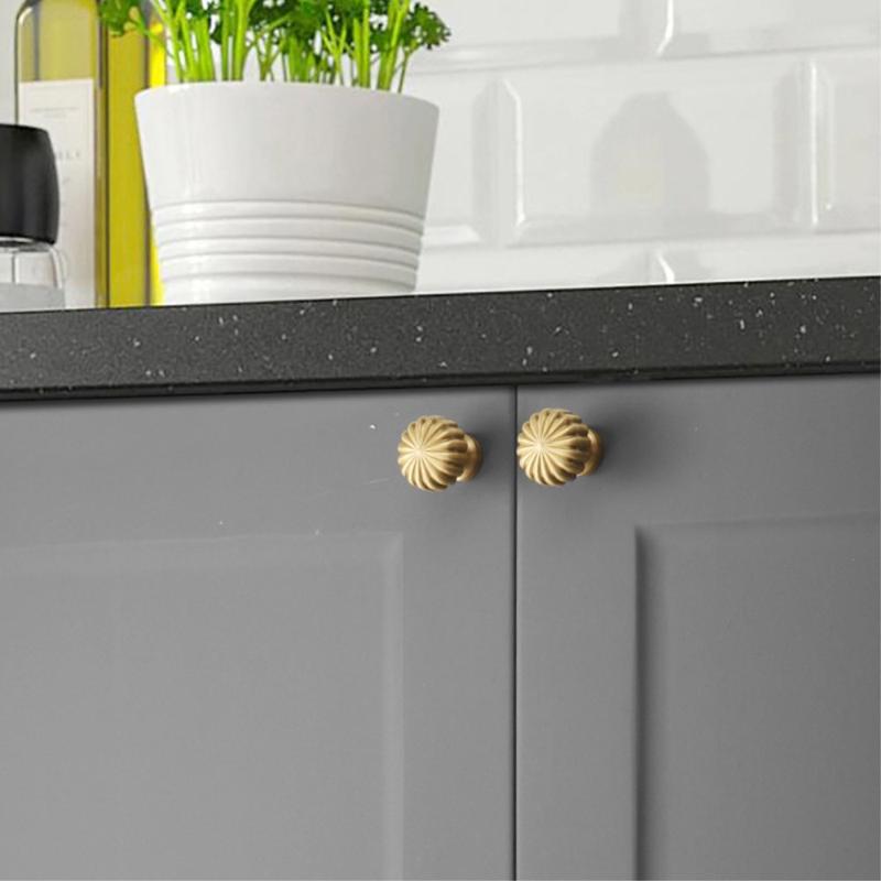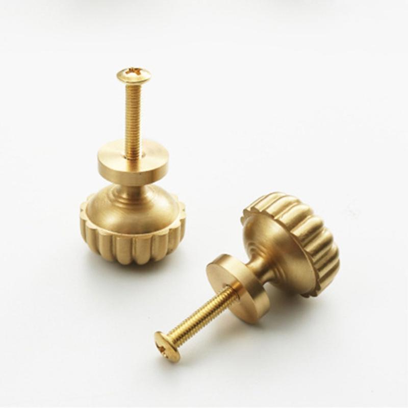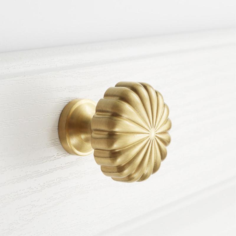 Give cabinets and drawers a fresh, elegant touch with this solid brass pumpkin knob. The pumpkin inspired profile adds classic European charm, while the anti oxidation finish keeps the rich gold tone bright for years. Each stripe is precisely machined for a smooth, comfortable grip, and the included 25 mm mounting screw fits most wooden doors, dressers and bedside tables straight out of the box.