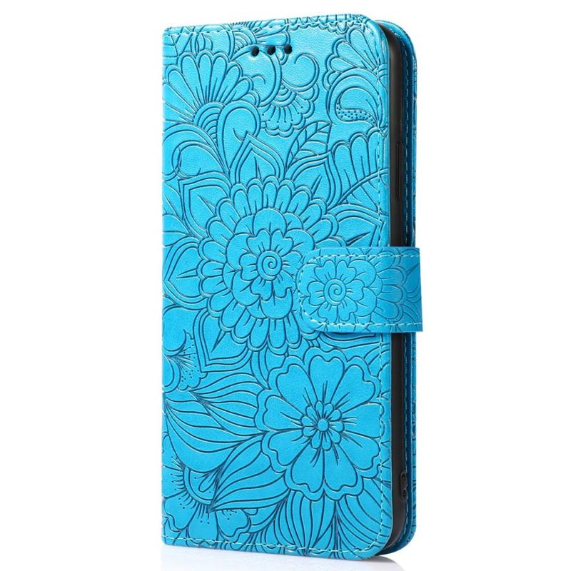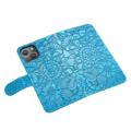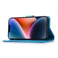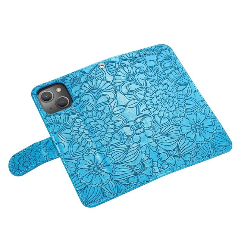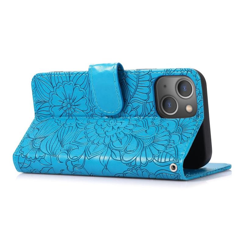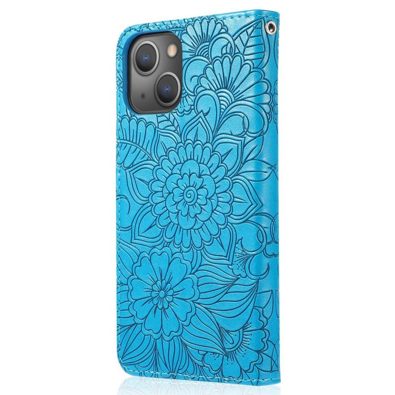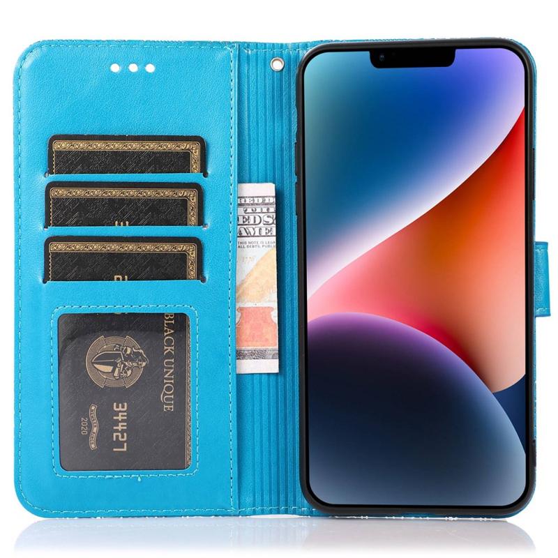 For iPhone 14 Imprinted Flower Pattern PU Leather Phone Cover Stand Shockproof Phone Wallet Case with Strap