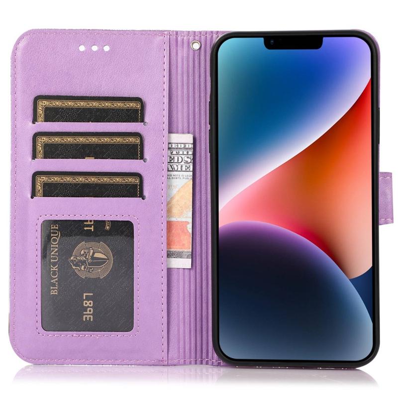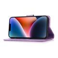 For iPhone 14 Imprinted Flower Pattern PU Leather Phone Cover Stand Shockproof Phone Wallet Case with Strap