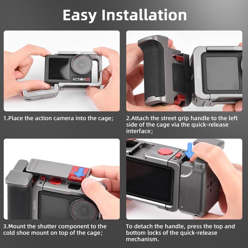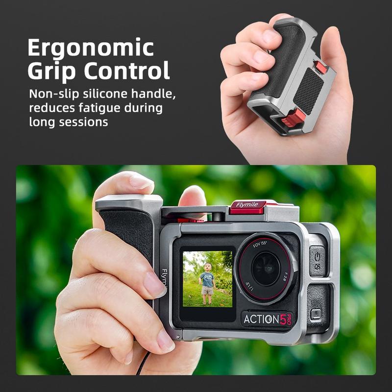 The Flymile handle and cage set adds protection, comfort, and accessory expansion in a compact setup-perfect for creators who want a more stable, versatile DJI Osmo Action rig for outdoor and handheld shooting.