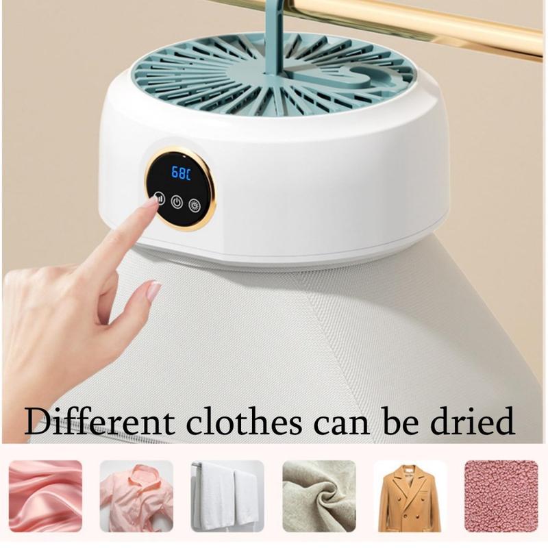Foldable 360° Circulation Clothes Dryer - 68°C Constant-Temperature Drying Machine, Up to 10 kg Capacity, 8-Hour Timer, 600W, Hanging Hook Design