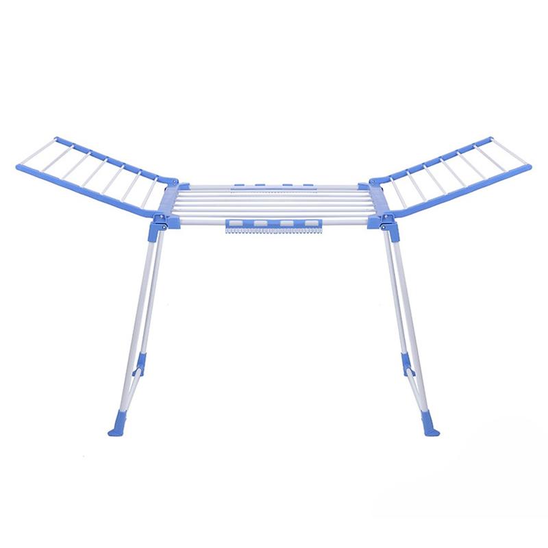 Built with painted iron rods and durable plastic components, the rack maintains excellent stability and long-lasting performance. Added crossbars at the base enhance overall strength, ensuring the stand remains sturdy whether used indoors or outdoors. Lightweight yet robust, it's an ideal choice for apartments, balconies, laundry rooms and gardens.
