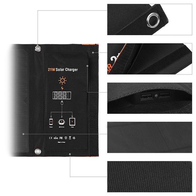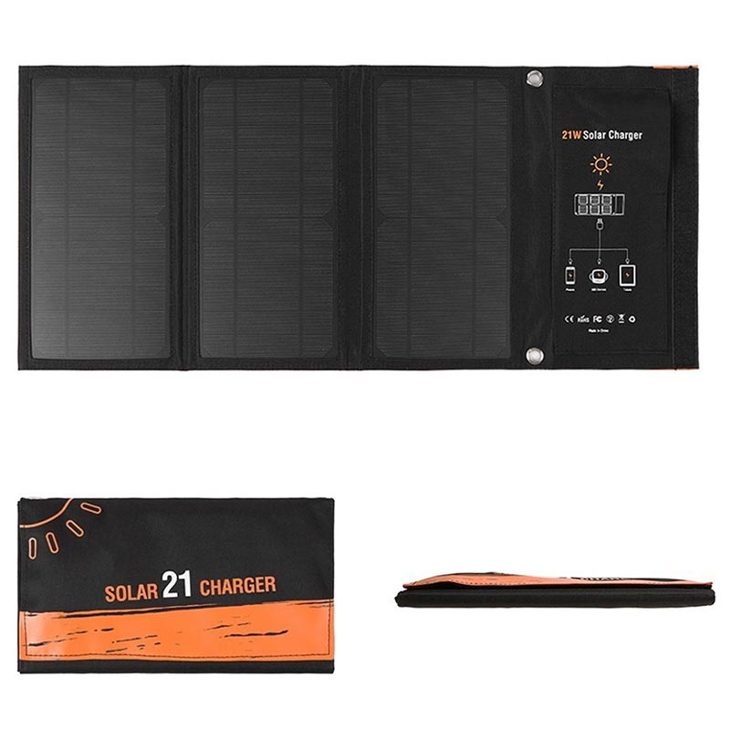 Foldable Solar Charger with Two USB Ports - 21W, 3.5A