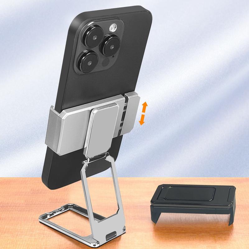 Folding Metal Desktop Phone Kickstand 360-Degree Rotating Zinc Alloy Cell Phone Back Clip Stand