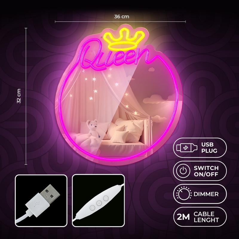 Enhance your interior with the Neon MIRROR LED, a perfect blend of ambient lighting and a practical mirror surrounded by a stylish neon frame. The LED light creates a cozy and relaxing atmosphere, making it ideal for both home decoration and everyday use. Its versatile application makes it a standout piece in service salons as well as in residential spaces.