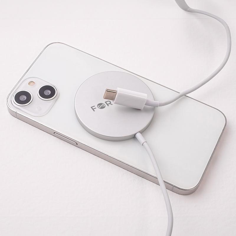 The Forever MAWC-100 wireless charger is a sleek and stylish device that provides fast and safe charging for phones that support wireless charging. Its MagSafe compatibility ensures a secure and convenient installation using a magnet, making it hassle-free to use. The durable metal construction and stylish appearance seamlessly complement the phone's design, while the 1-meter-long cable provides flexibility for users to use their phones while charging.