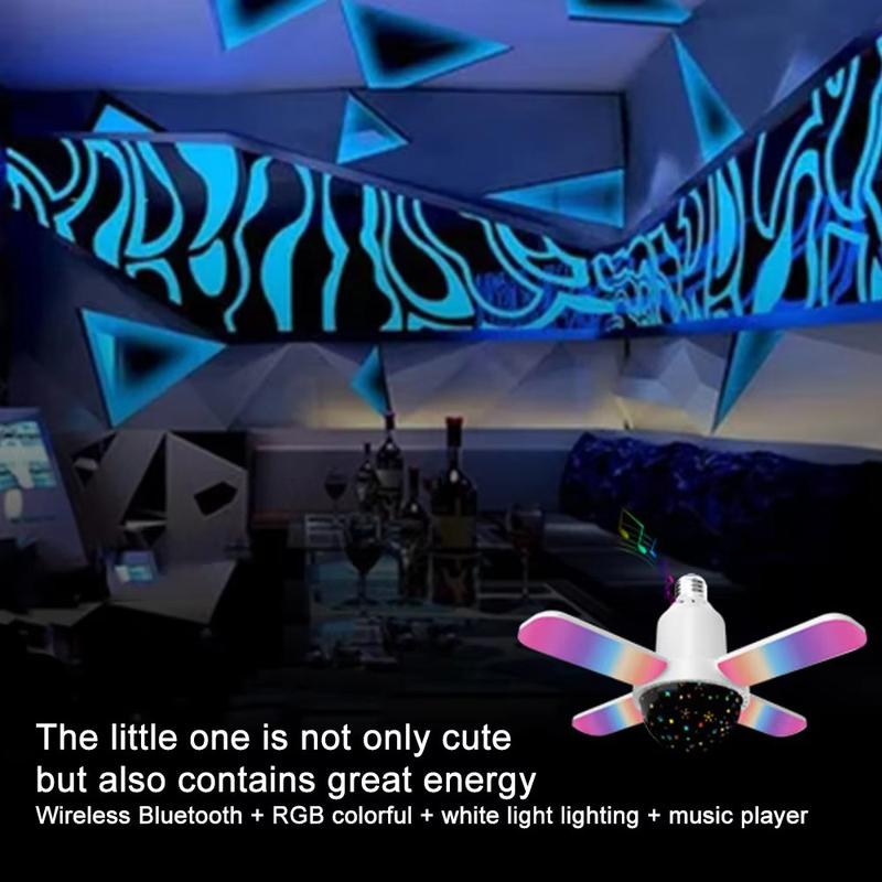 This Bluetooth music lamp offers exceptional versatility by combining high-brightness lighting, immersive RGB effects and wireless audio in a single device. Its deformable four-leaf design ensures wide, customizable illumination, while the E27 screw-in structure allows instant upgrade to any room without tools. Whether for ambience, entertainment or bright daily lighting, it’s a practical and fun addition to your home.