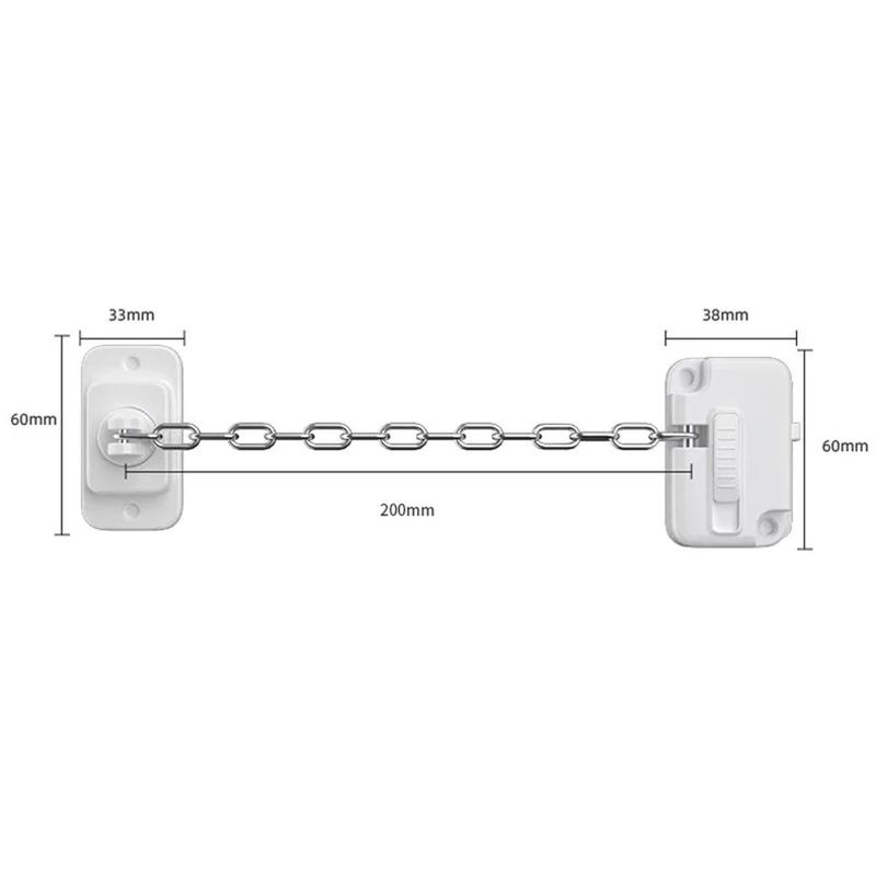 The FT756 Adjustable Chain Safety Lock is designed to secure windows, drawers, cabinets, and sliding doors, helping to prevent accidental falls or injuries for infants and pets. With its strong stainless steel chain and durable ABS construction, it provides reliable protection without compromising ventilation or convenience.