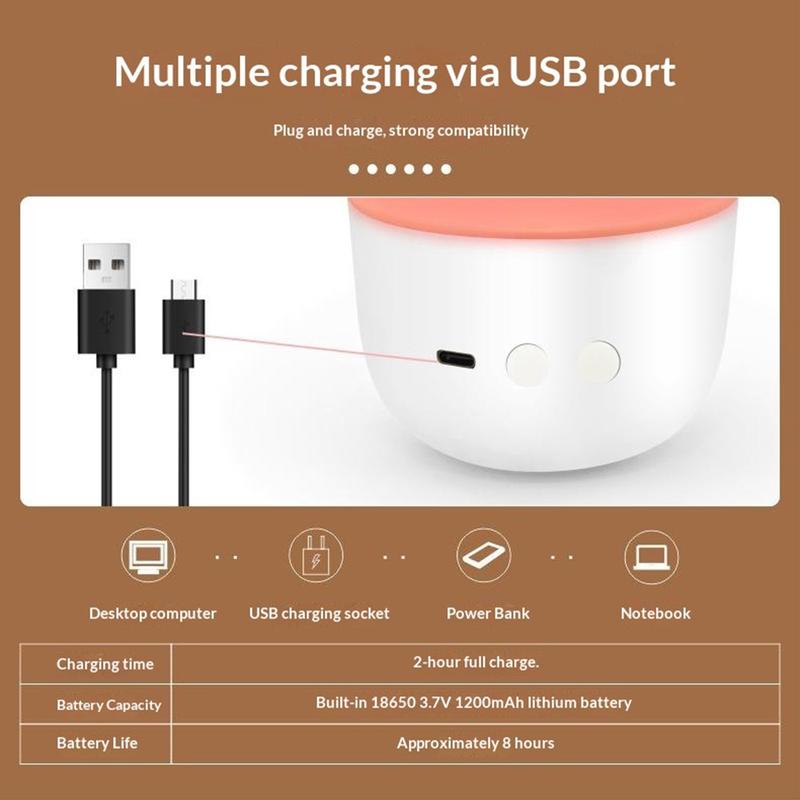 With a built-in 1200mAh rechargeable battery, the lamp can be used wirelessly and placed anywhere-ideal for bedside tables, desks, shelves, or outdoor evenings. Provides up to 8 hours of use on a full charge.
