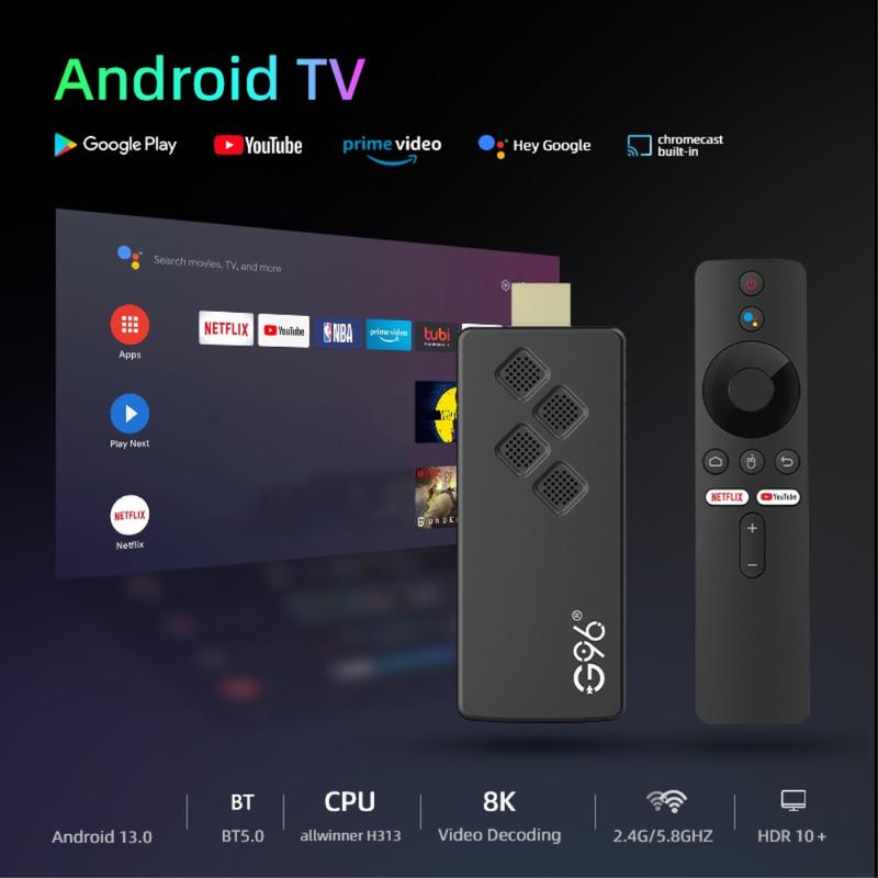 The G96 ATV TV Stick is a powerful media player that brings the latest Android 13.0 operating system to your TV. It supports 8K video resolution, providing stunning visuals and an immersive viewing experience. With dual-band WiFi and Bluetooth 5.0, it ensures fast and stable connectivity. The device comes with a voice remote control for easy navigation and a user-friendly interface.