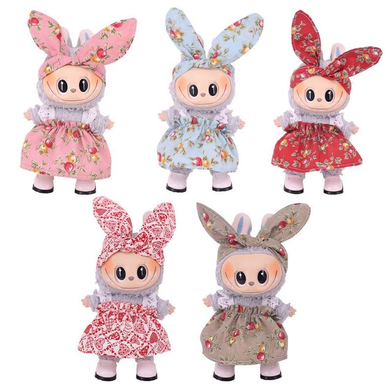 Garden-Party Dress & Headband Set for 17cm Labubu Mini Figure - Tailor-Cut Party Outfit, Soft Cloth, Easy-Dress Design